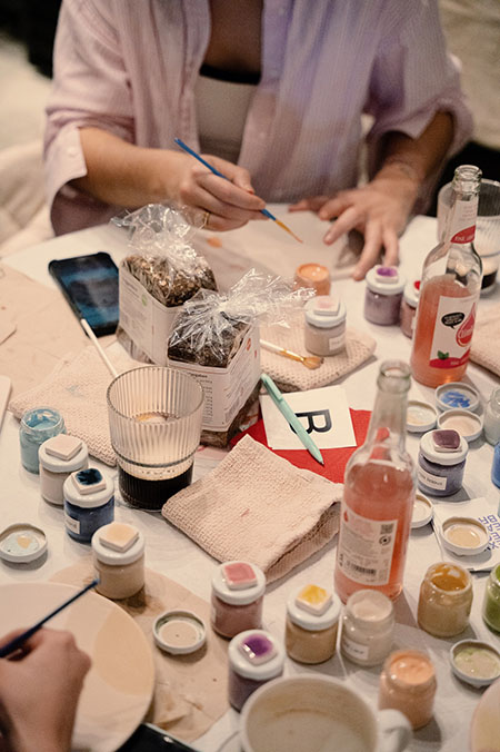 Zwischen Ton, Musik, Snacks und Gesprächen entstand ein Abend mit cozy Vibes und hands-on Charakter. Die Gäste formten Keramik, teilten Brot und Zeit. Kein Programm, kein Druck, einfach Zusammensein.